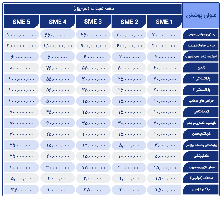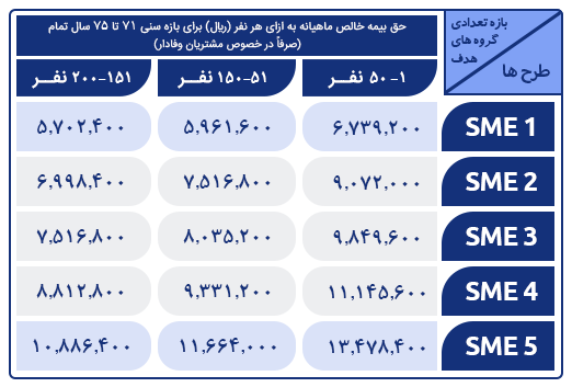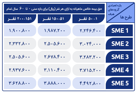 بیمه تکمیلی درمان گروه های کوچک و متوسط (SME) سامان یکی از بهترین انواع‌ بیمه درمان برای گروه های کوچک و متوسط است که می تواند با پوشش‌ها و جبران هزینه های سنگین درمان بیماری (پزشکی، دندانپزشکی، دارو، عمل‌ها‌ی جراحی و مخارج‌ بیمارستان) آرامش خاطری برای بیمه شده و خانواده آنها فراهم کند.