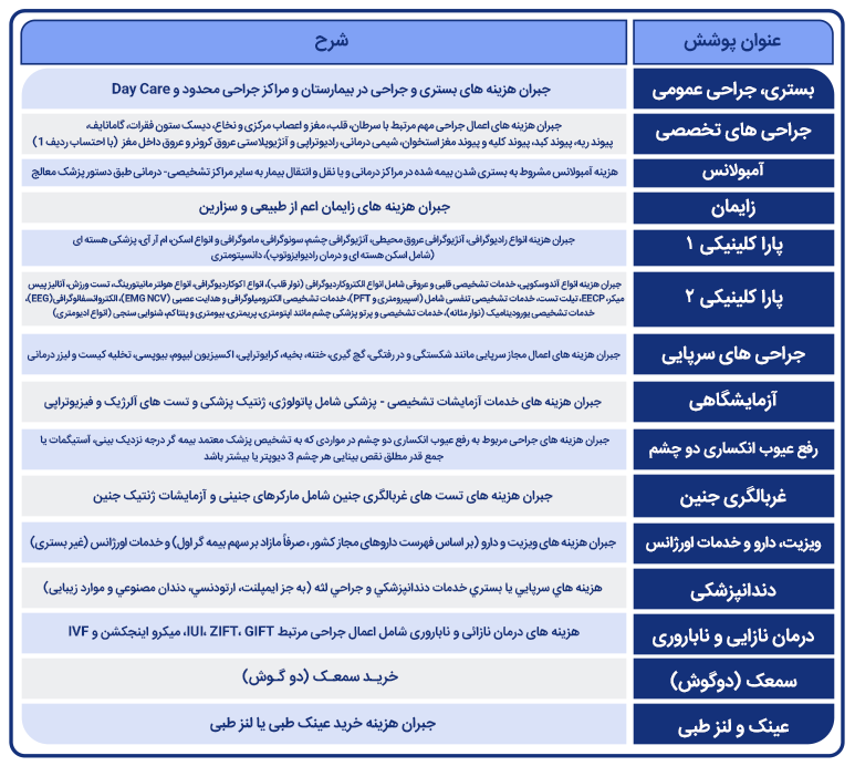 • پرداخت هزینه‌های تشخیصی، پاراکلینیکی و هزینه‌های جراحی‌های سرپایی